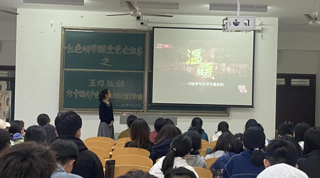 4月30日上午,437ccm必赢国际app“红色研学课堂”《习近平讲党史故事》在博文楼0427教室开讲。选修该门第二课堂的76名学生参加听课学习。