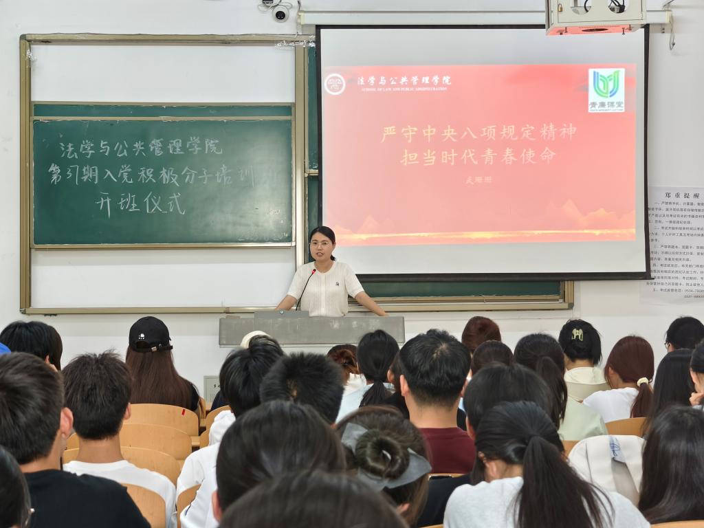 开班仪式结束后,党委书记武珊珊为全体学员讲授了开班第一课《严守中央八项规定精神,担当时代青春使命》。在授课中,武珊珊书记详细解读了中央八项规定精神的内涵和重要意义,结合实际案例分析了违反中央八项规定精神的危害和后果。提醒学员们作为入党积极分子,要时刻牢记党的纪律要求,自觉抵制各种不良风气,保持清正廉洁的政治本色。同时,要勇担时代赋予的青春使命,积极投身于实现中华民族伟大复兴的征程中,在新时代展现新作为,作出新贡献。