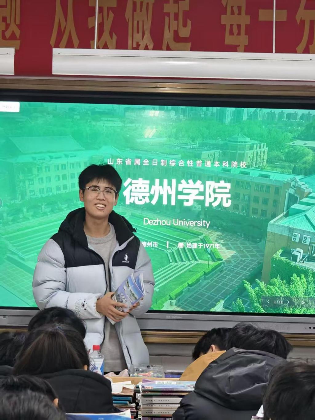 为提升学校社会声誉、吸引优质生源,2026年寒假,法学与公共管理学院组织开展“把德院带回高中母校”招生宣传社会实践活动,优秀在校生奔赴山东多地高中完成宣讲,活动取得良好成效。