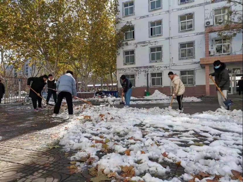 11月8日,437ccm必赢国际app党委组织了志愿扫雪除冰活动,师生党员、入党积极分子和学生干部踊跃参加。