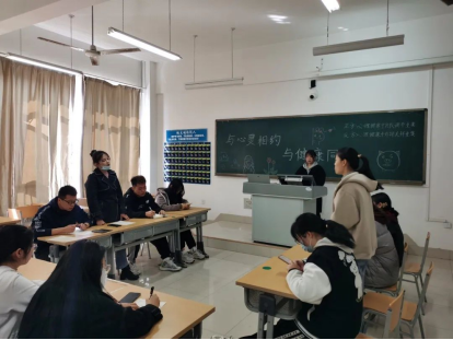 本次活动共分为心理委员辩论赛和心理委员交流分享两个环节。活动伊始,辩手们抽签进行正反分组,正方辩题为心理健康中自我调节重要,反方辩题为心理健康中外部关怀重要。随后主持人进行开场白,介绍本次辩论赛规则、参赛人员以及评委等。辩论赛正式开始后,辩手们不仅语言流畅语速适中,而且论据充分逻辑严明,在辩论环节中,双方团队配合默契并相互支持不断形成己方优势,形成一个有机整体。辩论赛结束后评委根据每位辩手的表现评选出优秀辩手与获胜队伍。活动最后,邀请心理委员进行上学期工作的经验分享与交流。至此,“与心灵相约,与健康同行”心理委员座谈会圆满结束。