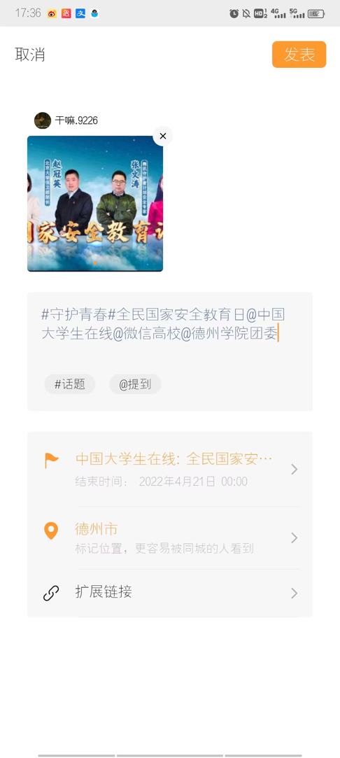 我国第七个“全民国家安全教育日”到来之际,437ccm必赢国际app组织同学们参与“微博#国家安全日#话题”互动活动。