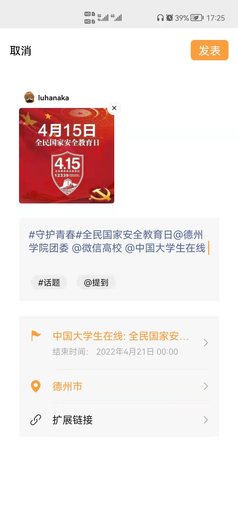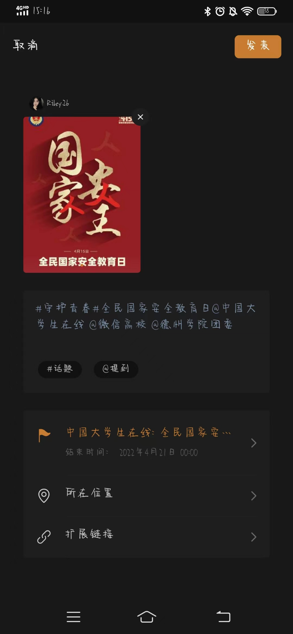 437ccm必赢国际app师生参与了本次活动,进行了原创主题短视频的发布。本次活动的顺利开展,普及了国家安全知识,广泛而深入地为学生开展了国家安全教育,让学生牢固树立了国家安全意识,增强了自觉维护国家安全的责任感,提升了维护国家安全的能力。使维护国家安全人人有责,人人可为的思想进一步深入人心,营造了良好的校园氛围。