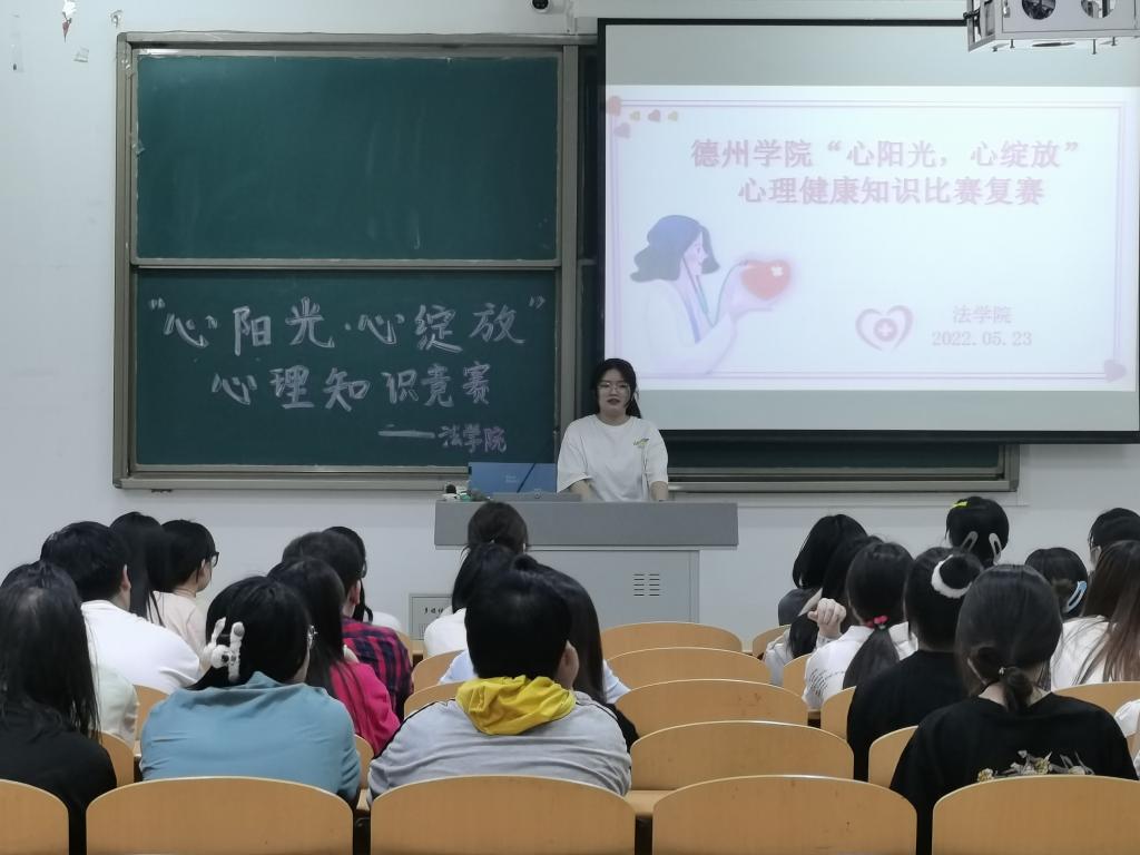 为了营造良好的心理健康教育氛围,推进学校心理健康教育工作的实施,提高大学生心理健康素质水平,丰富校园文化生活,增强大学生对心理健康的认识与重视。2022年5月19日、23日由我校心理健康教育与咨询中心主办,437ccm必赢国际app承办的以“心阳光,心绽放”为主题的心理健康知识比赛在博文楼427教室成功举办。