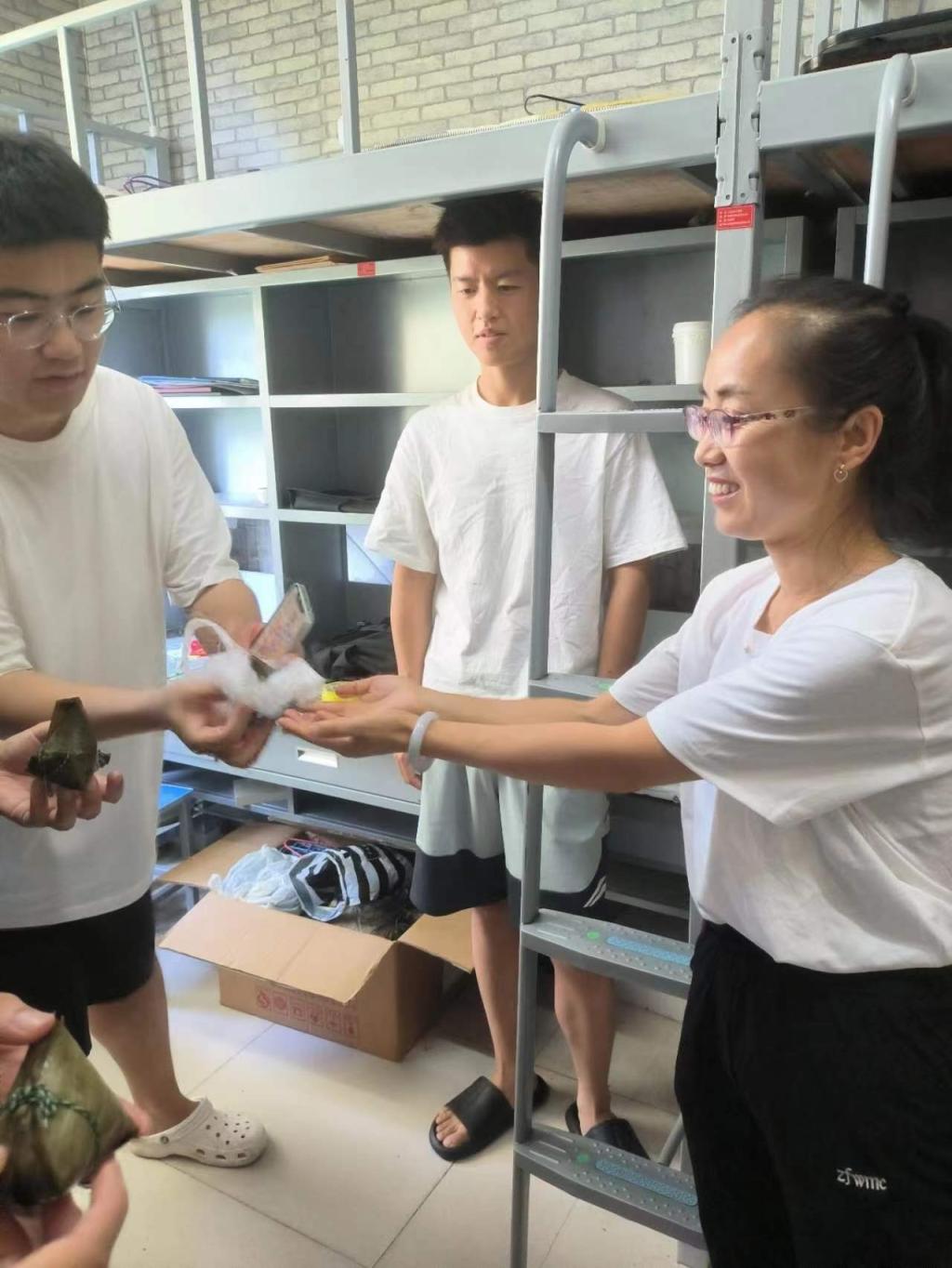 时至毕业生离校恰逢端午佳节,437ccm必赢国际app学工办、团委老师走进毕业生宿舍,送上甜甜的粽子欢送毕业生奔赴祖国各地,祝福毕业生“粽”享安康,前程似锦。