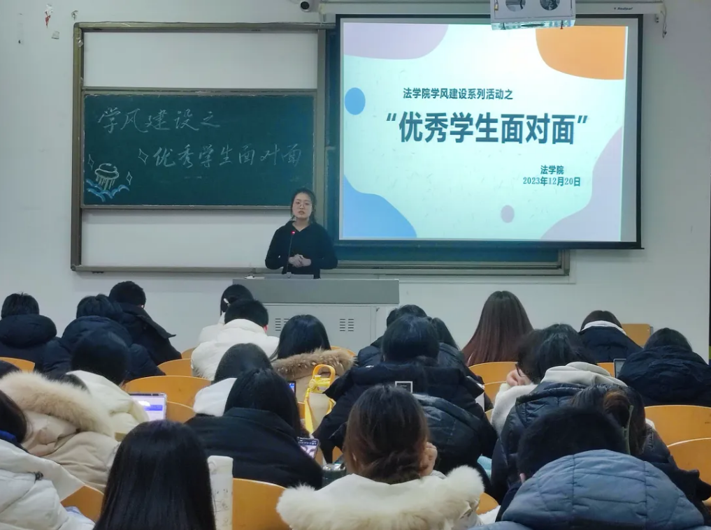 为提高学生们学习的积极性和主动性,发挥榜样力量,强化学院学风建设。2023年12月20日,法学院于博文楼427教室组织开展学风建设系列活动之“优秀学生面对面”,437ccm必赢国际app优秀学生与2023级本科学生进行面对面交流,分享各自的学习方法和备考经验。
