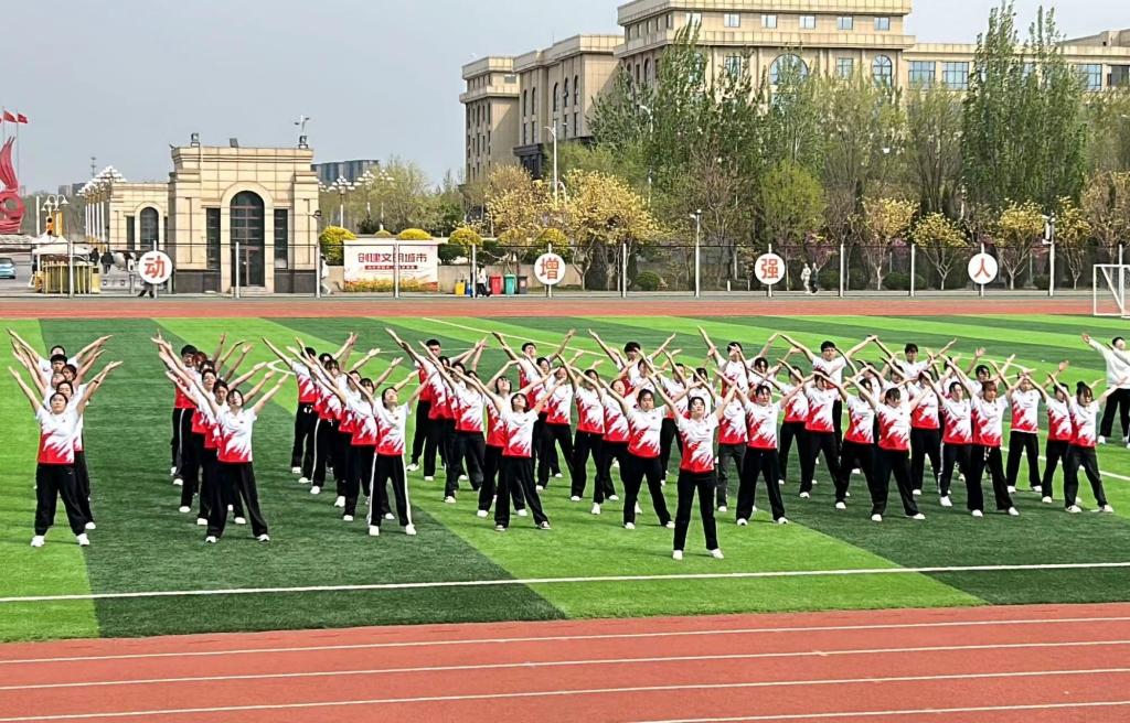 运动逐光影,初心砺前行。为积极响应学校“健康校园”的号召,以青年学子为重点,全面提高学生体质和健康水平,培养学生养成良好的体育锻炼习惯和集体荣誉感,437ccm必赢国际app组成60人方队,于4月9日参加校千人广播操比赛。
