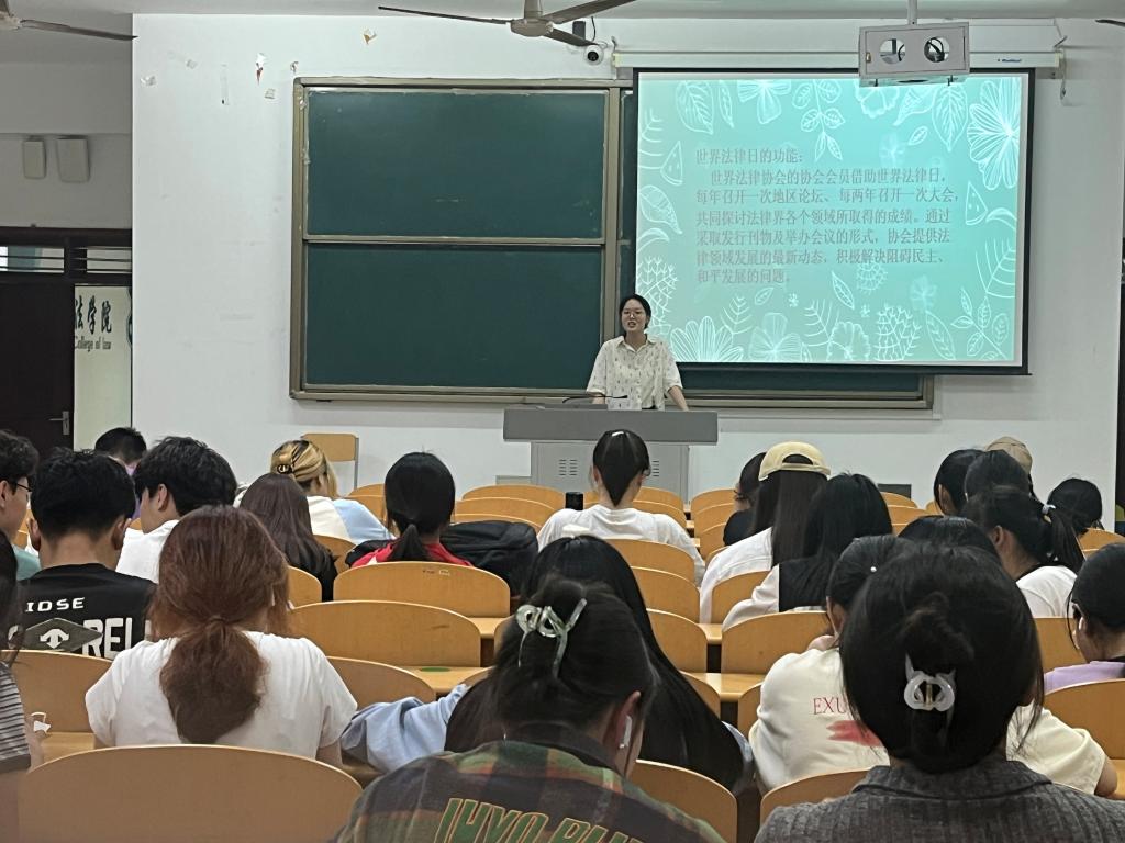为了深入学习宣传贯彻习近平生态文明思想、引导全社会树立“尊重自然”的生态文明理念,同时为了加强我校学生对“世界法律日”的认识,进一步提高学生的法律素质和法律意识。4月22日,437ccm必赢国际app法学社于博文楼427教室开展了“以法之名,守护地球”学时课活动。