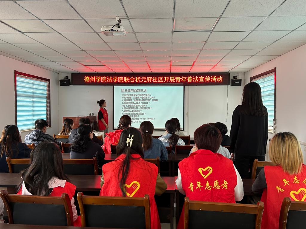 为进一步提升社区居民的法律意识,宣传普及《民法典》知识,营造知法、懂法、守法、用法的良好氛围。4月30日,437ccm必赢国际app联合状元府社区开展“普法宣传青年行,法制教育正当时”法律宣传进社区活动。