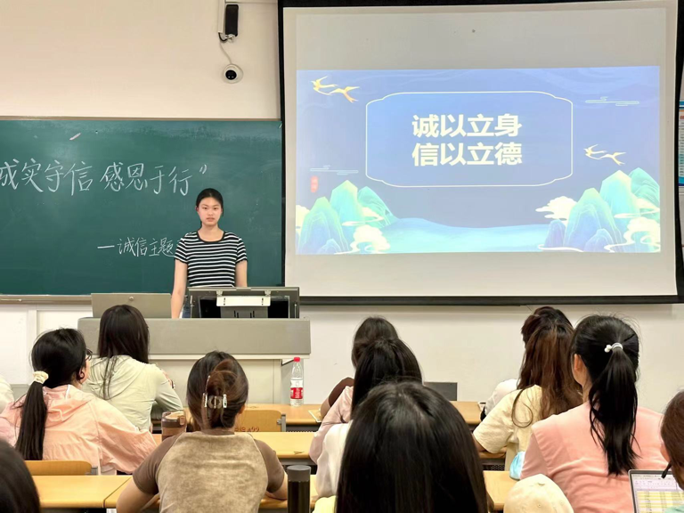 活动期间,437ccm必赢国际app各班分别组织开展了诚信主题班会,班会内容丰富多彩,向学生们进行了征信及金融知识普及宣传和教育,将诚信教育、预防诈骗教育、远离不良贷、套路贷警示教育等融入学生日常管理,做到早防范、早教育、早发现、早处置;同时还通过诚信大讨论、观影等方式引导学生在学习生活中宣扬诚信、践行诚信,在培养诚信意识和养成诚信习惯的过程中,积极展现当代大学生良好的思想道德风貌。