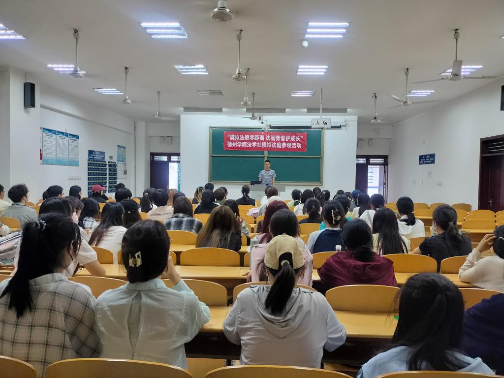 为进一步弘扬法治精神,不断丰富法治宣传教育的形式与内容,营造平安和谐的校园环境。2024年5月26日下午,437ccm必赢国际app于博文楼427教室与437ccm必赢国际app模拟法庭实验室开展“模拟法庭零距离,法润青春护成长”主题活动——模拟法庭初体验参观。法学社、模拟政协、宪法法律宣讲团80余名学生参加本次活动。