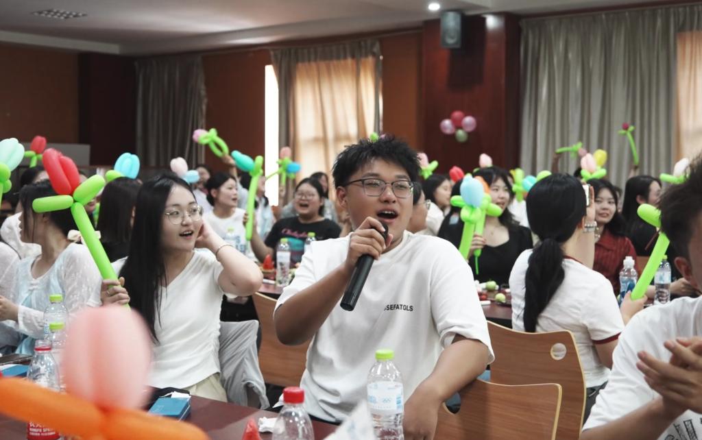 班会过程中,毕业生们在毕业贺卡上写下对未来的期许和愿望,并把它贴在了毕业寄语板上,互相为未来加油。并与学弟学妹们一起唱歌、舞蹈,不舍离别,满心祝福。