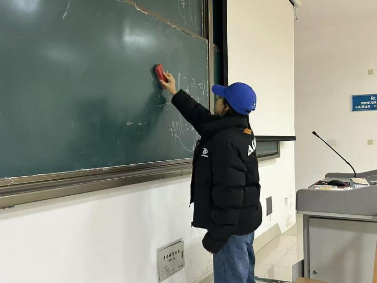 活动中,青马学员们分组对学院的教室、走廊、修读点以及博文楼外部区域展开全面清扫。从擦拭桌椅、黑板到清扫地面,规范停放共享单车,志愿者们认真负责,确保每一处都一尘不染,为同学们打造出干净整洁的校园环境,以实际行动实现学习文明,举止文明,停车文明。