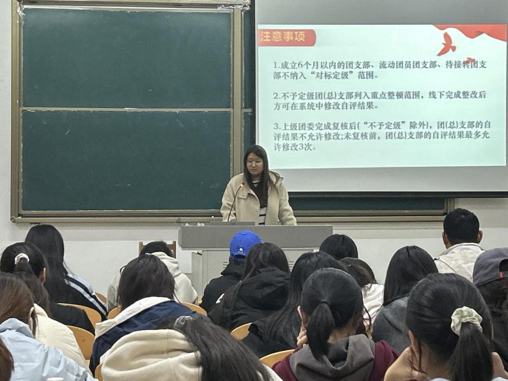 会议伊始,学院学生会分管主席为学生骨干强调了智慧团建系统作为共青团工作的重要网络平台是团支部开展工作不可或缺的有力工具。分管团务工作的部长陈丽颖对智慧团建系统的教育实践、对标定级、团员管理、团内激励、三会两制一课板块进行了详细的介绍,并对操作的注意事项进行了特别提醒。