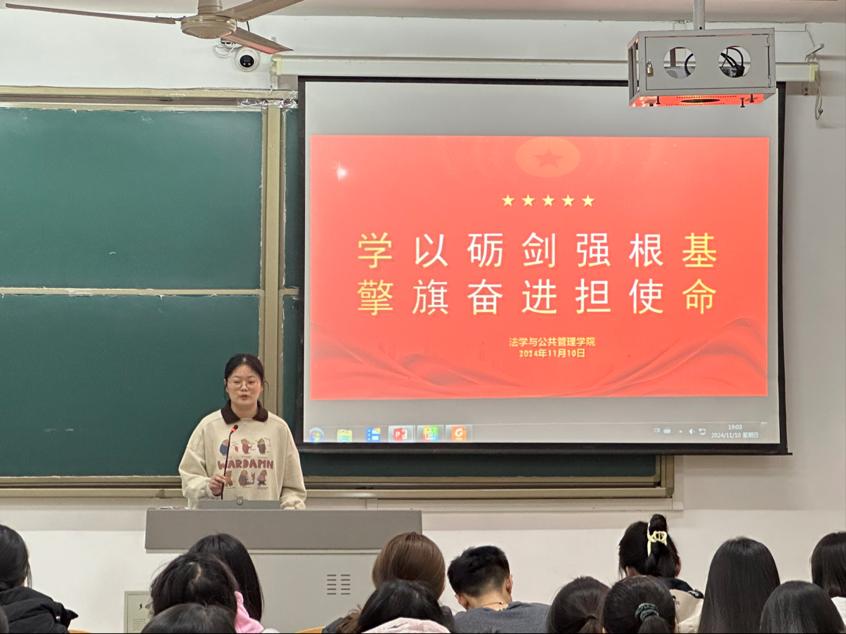 为了帮助学生干部进一步加强政治修养,增强政治信念的坚定性,提高个人综合素质,进一步成长为中国特色社会主义事业的合格建设者和可靠的接班人。法学与公共管理学院于11月10日在博文楼427举行“学以砺剑强根基,擎其奋进担使命”暨发展团员、党员推优流程培训会议。