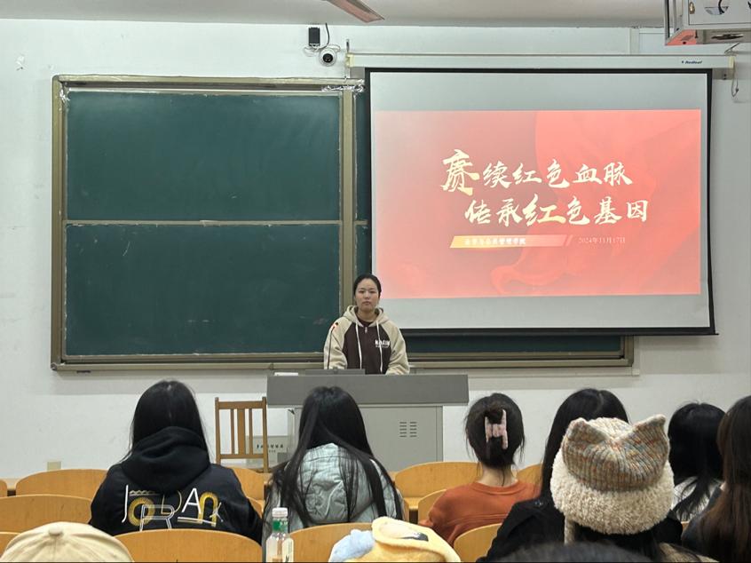 会议伊始,学生会骨干秦志茹为青马学员们讲述了革命精神的内涵、本质及意义。她倡导各位学生干部要坚定理想信念,培养艰苦奋斗、勤俭节约的精神,践行全心全意为人民服务的宗旨,争做社会主义建设者和接班人。