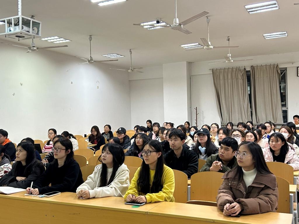 戴峰老师围绕“新青年如何直面现实的挑战”为主题展开本次宣讲,从革命年代的英雄人物到身边刻苦学习的考研同学、以及投身西部计划的新时代青年,每一个故事都激励着同学们要在当今这个充满机遇与挑战的时代,努力激发自己勇敢地走出舒适区,向着理想的彼岸奋勇前行。