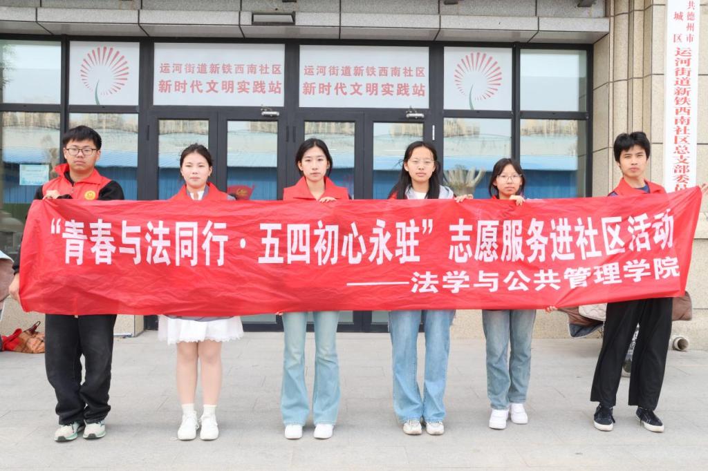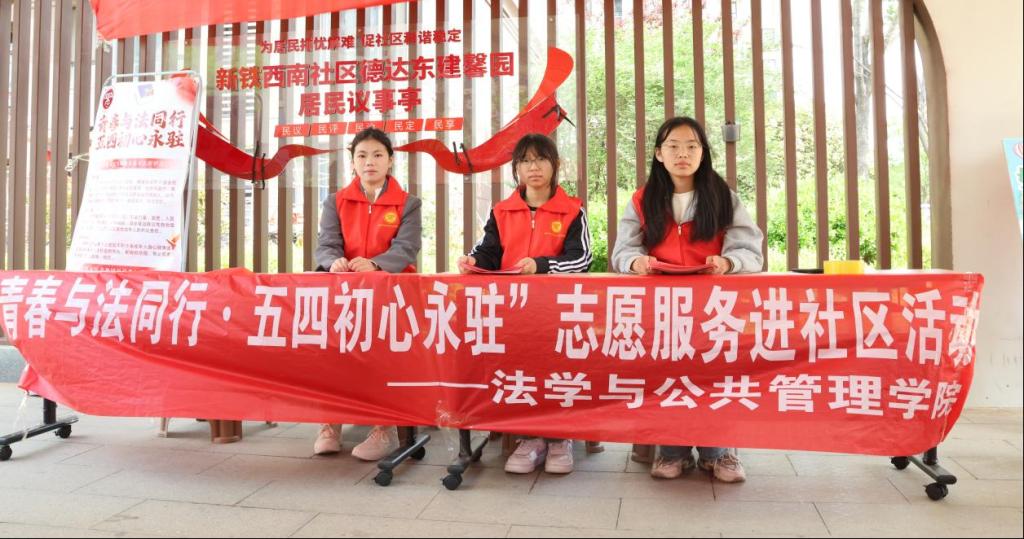 为弘扬五四精神,增强社区居民法治意识,将青春力量融入基层法治建设,4月26日,法学与公共管理学院联合新铁西南社区开展“青春与法同行 五四初心永驻”志愿服务进社区活动,以生动多元的形式让法治理念走进千家万户,展现了新时代青年的责任与担当。