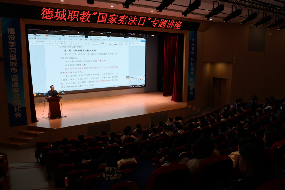 在第十二个国家宪法日来临之际,12月3日,法学与公共管理学院院长杨振生应邀到德城区作“学习宪法知识、弘扬宪法精神”专题宣讲报告。