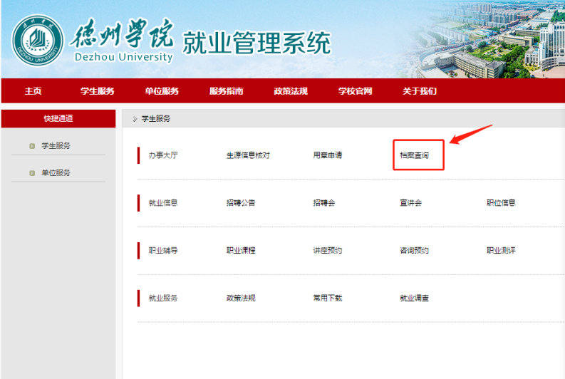 1.登录437ccm必赢国际app就业管理系统。请点击“学生服务”