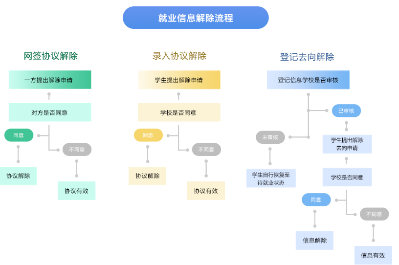 注:如果学校没有审核存档,毕业生签约过程没有真正完成,毕业生与单位无法解约。