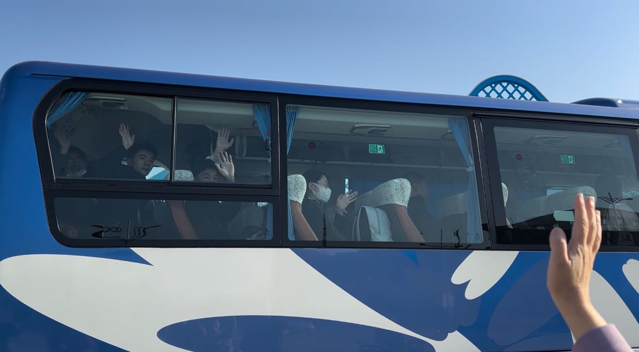 辅导员为每一名毕业生送上精心准备的苹果,祝同学们出行平安、实习顺利。