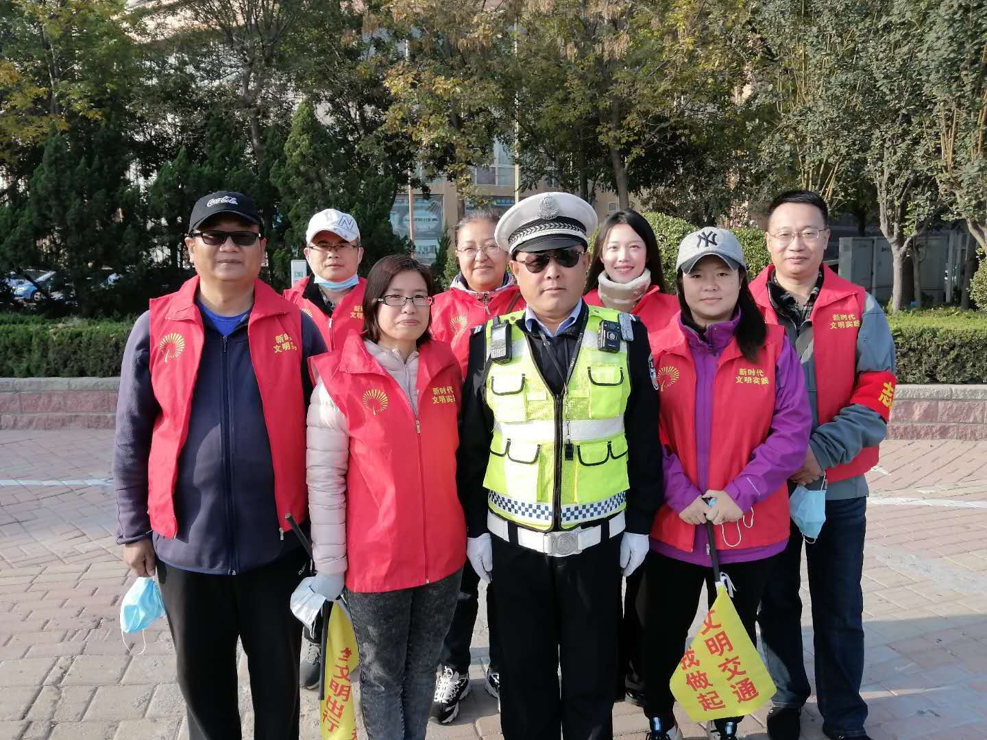 10月19日,必赢官网教师志愿者在学院分工会的安排部署下,来到德城区德兴路与大学路十字路口协助交警执勤,宣传劝导群众遵守交通规则。