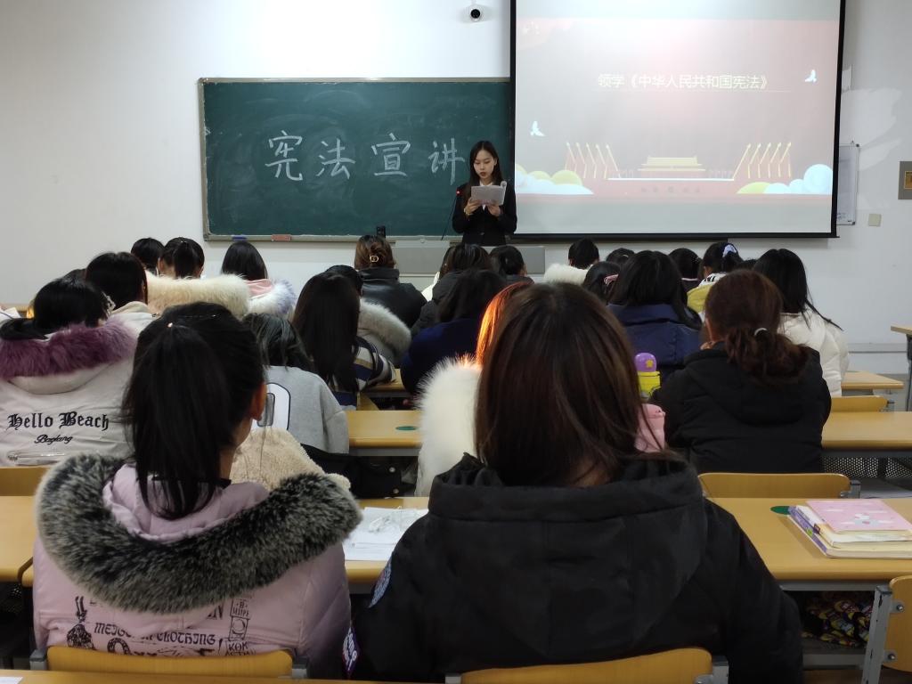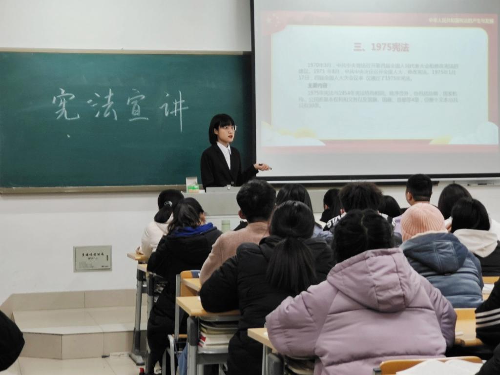 截止12月18日,宣讲队先后到马克思主义学院、外国语学院、文学与新闻学院、美术学院、教师教育学院等院系班级、宿舍开展了现场宣讲。宣讲通过知识讲解、展示图片、领学原文、座谈交流、赠送宣传册等方式,向同学们普及了“宪法概念与起源、世界宪法发展、近现代中国宪法、《中华人民共和国宪法》”四个方面的基本概念和知识,重点宣传了我国宪法的主要内容与核心价值理念。