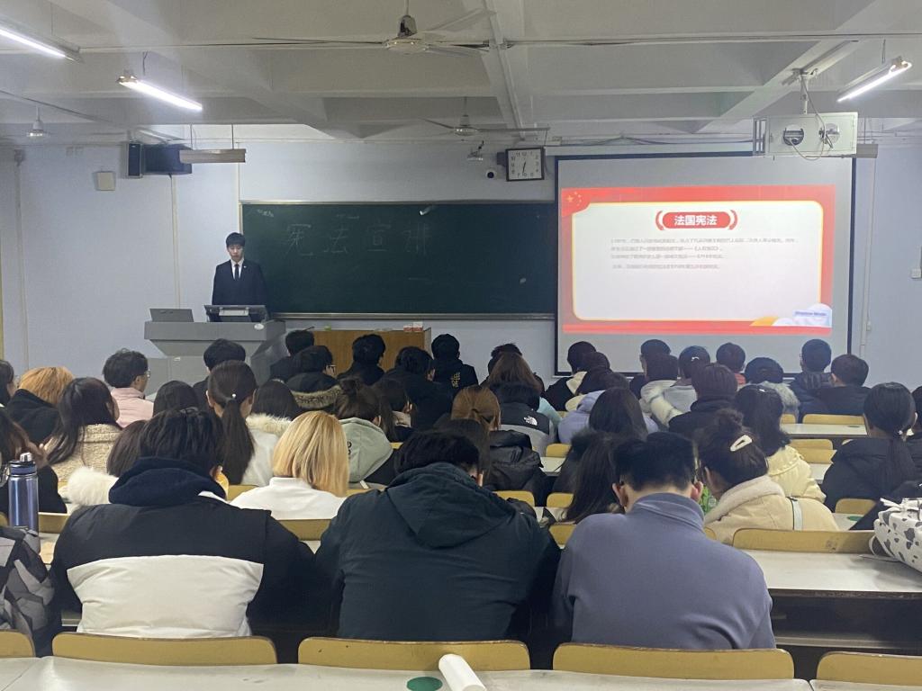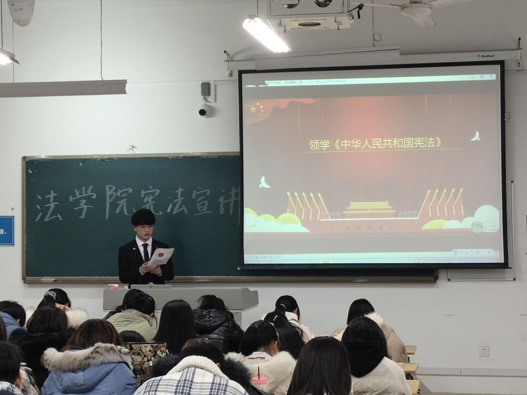 为深入学习贯彻习近平法治思想,普及宪法基本知识,大力弘扬宪法精神,培养大学生群体维护宪法、遵守宪法、捍卫宪法的意识与能力,12月4日以来,在我校党委宣传部、团委的大力支持下,437ccm必赢国际app组织法学专业同学成立大学生宪法宣讲队,深入各院系教室、宿舍开展宪法宣讲活动。
