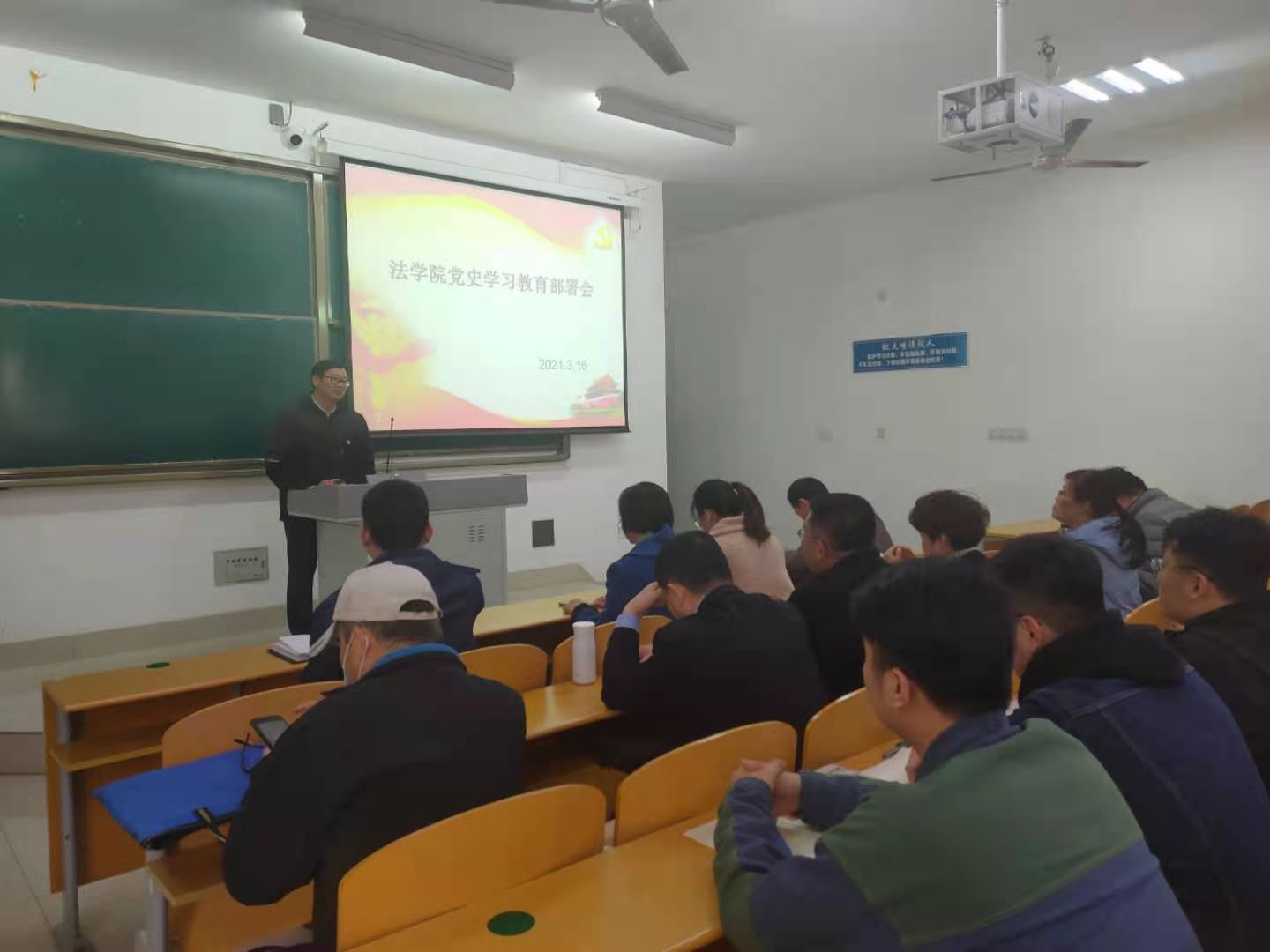 3月16日下午,必赢官网在博文楼427教室召开全体师生党员大会,传达学校党史学习教育动员大会精神,启动部署本单位党史学习教育。
