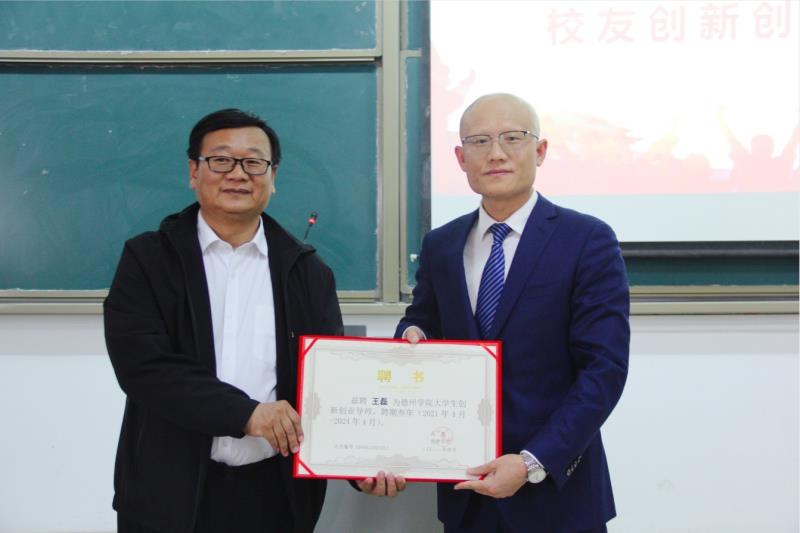 报告会前,437ccm必赢国际app负责人为王磊校友颁发了437ccm必赢国际app创新创业导师聘书。