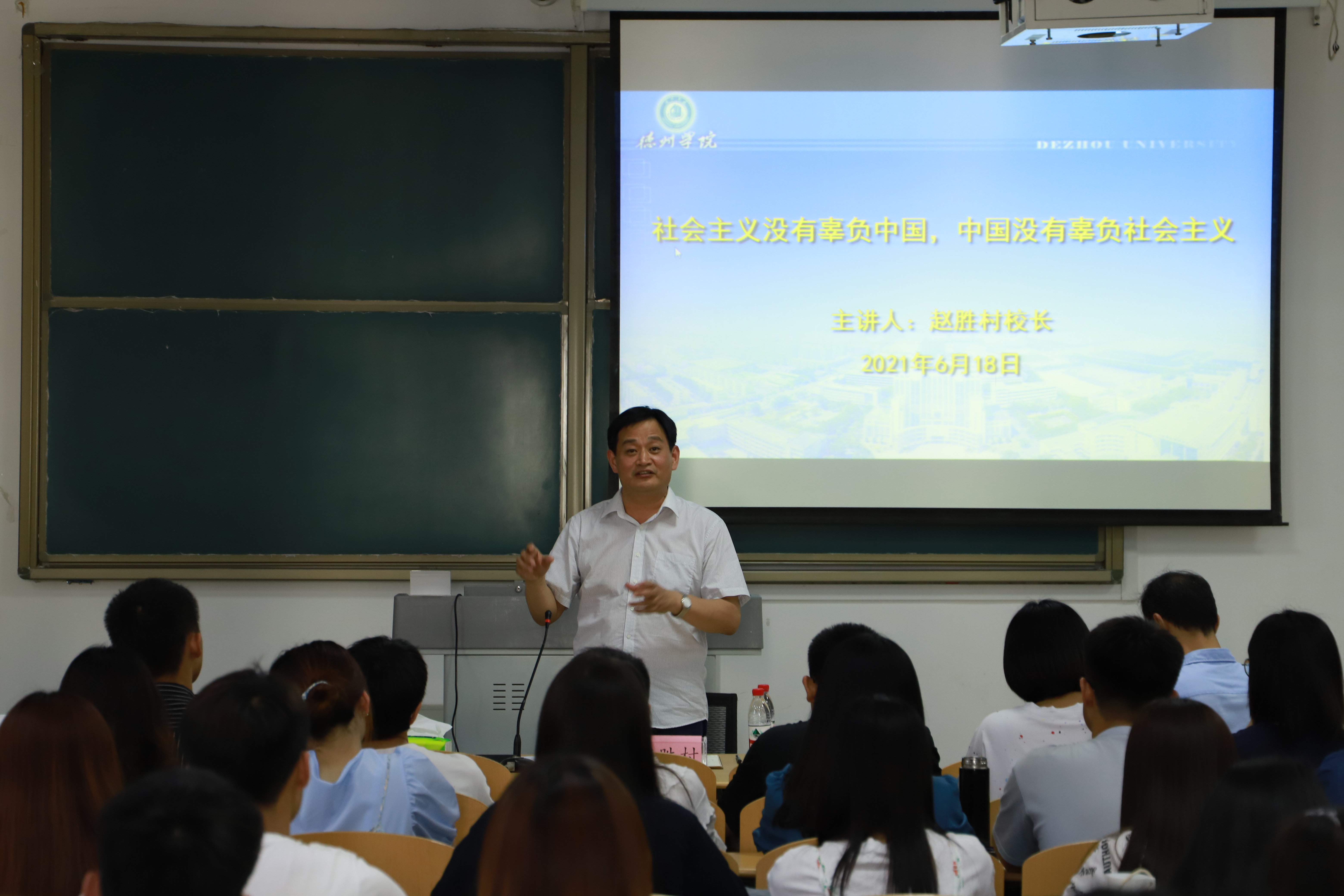 2021年6月18日,赵胜村校长在博文楼427教室为437ccm必赢国际app第一学生党支部全体党员、2019级公共事务管理班学生开展了《社会主义没有辜负中国,中国没有辜负社会主义》专题讲座。马克思主义学院李霞教授、437ccm必赢国际app班子成员以及师生党员110余人聆听了讲座。