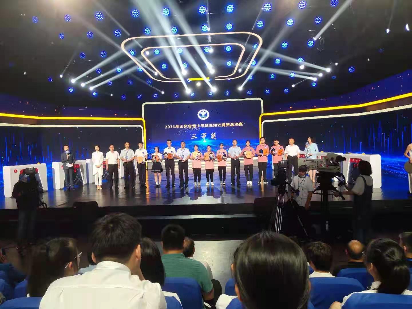 2021年9月7日,由山东省禁毒委员会办公室、山东省教育厅、山东省广播电视局主办,山东广播电视台承办的2021年全省青少年禁毒知识竞赛总决赛在山东电视台演播厅圆满落幕。437ccm必赢国际app教师徐丽红老师指导,由平原县第一中学金依硕、平原县第四中学郭育炜和平原县职业中等专业学校司洪岩同学组成的德州市代表队获得三等奖,取得了德州市参赛以来的最好成绩。