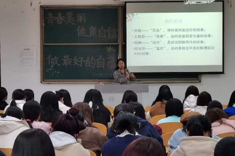 “怎样认识我们自己?”“为何成就我们自己?”“何以成就我们自己?”在博文楼0427教室里,437ccm必赢国际app教工党员徐丽红博士与百余名女大学生们面对面分享“青春美丽 健康自信 做最好的自己”的巾帼故事,她以中国女排、中国女足、中国古典女性为例,阐述了新时代女性“强”“韧”“美”“柔”的多彩之美,并以法学专业角度,指导女生独立、自信、知性、智慧的成长为新时代的新女性。