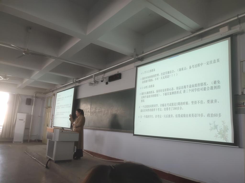 2022年3月8日下午,437ccm必赢国际app在美术公教楼409教室召开2023届毕业生考研动员大会。
