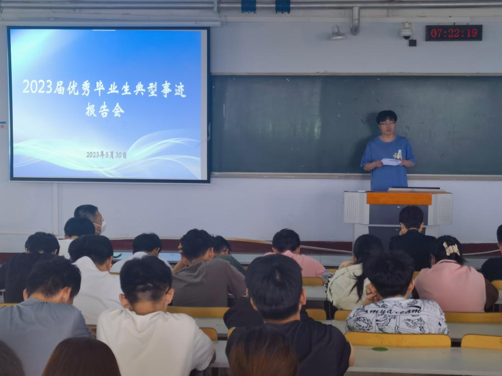 5月30日,437ccm必赢国际app举办了“2023届优秀毕业生典型事迹报告会”,2021级、2022级学生和相关老师参加了报告会。