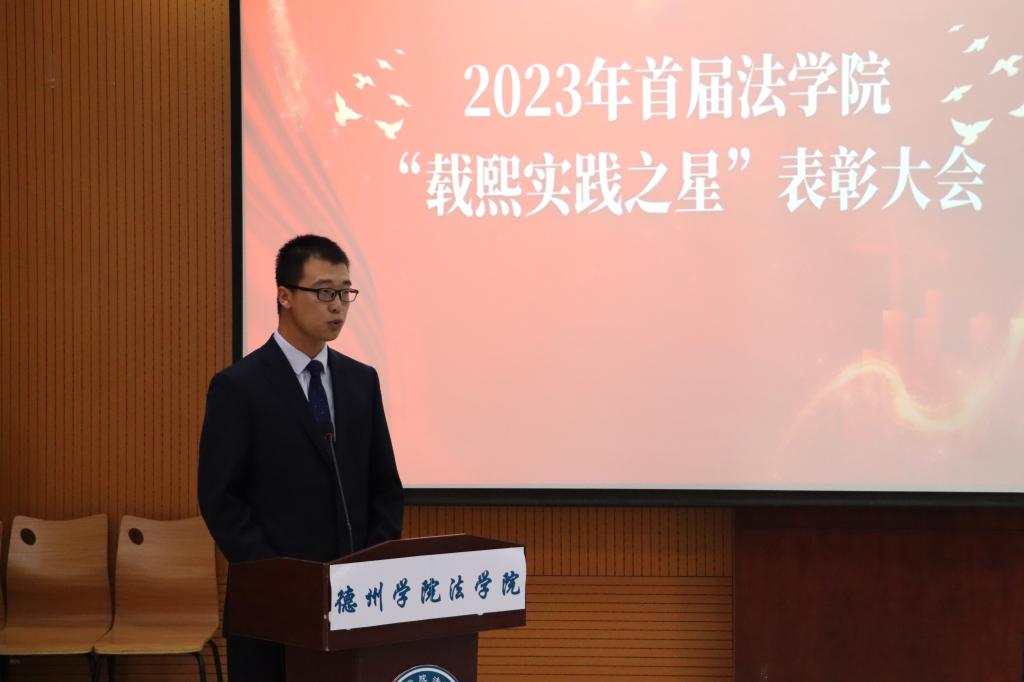 付润泽同学和殷国鑫同学分别代表山东省高校“学宪法讲宪法”比赛和山东省高校大学生模拟法庭大赛参赛同学汇报了参赛情况,发表了获奖感言。