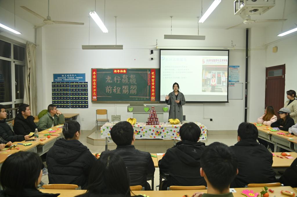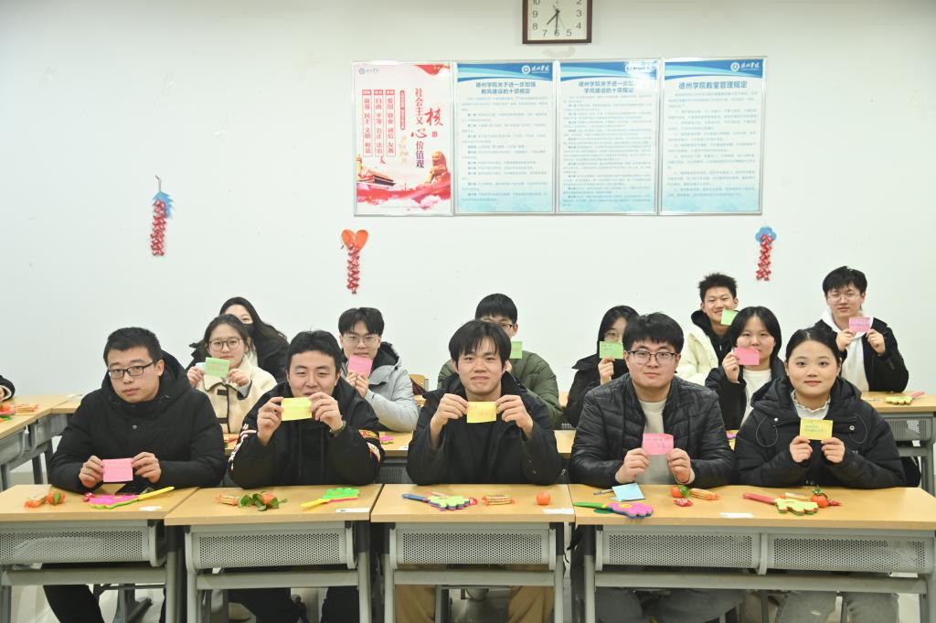 辅导员耿雯老师精心布置班会场地,喜迎同学们回家。班会现场欢声笑语,其乐融融,同学们争先恐后地分享着各自的寒假体验和有趣经历。有寒假学习成果、有社区志愿服务、有专业实践感悟、有青鸟计划就业认知,也有“年味儿”制作、民俗文化调研等。每个学生的假期充实而有意义。
