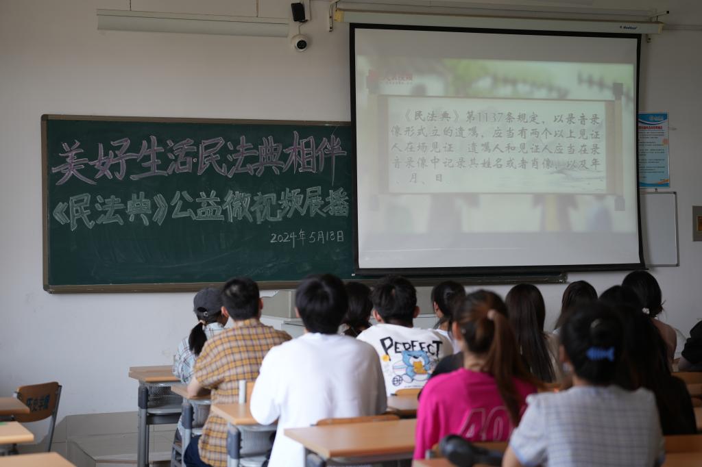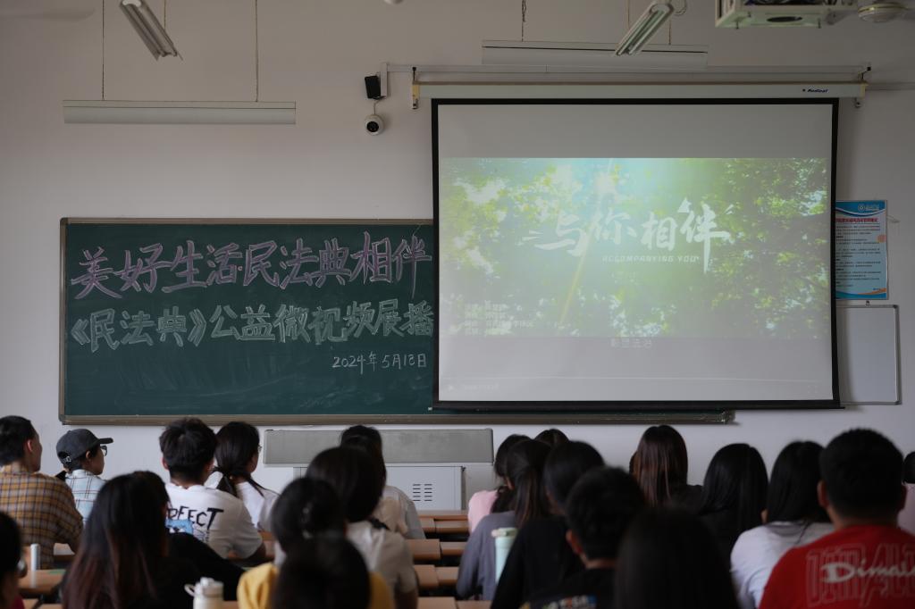 2024年5月是全国第4个“民法典宣传月”,为深入实施“八五”普法规划,贯彻落实习近平法治思想,弘扬社会主义法治精神,带领广大学生学习民法典、宣传民法典,运用民法典,5月18日,437ccm必赢国际app“美好生活·民法典相伴”民法典公益微视频展播活动在博文楼417教室举行,来自全校19个学院的40余名学生参加观看。