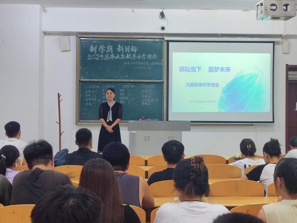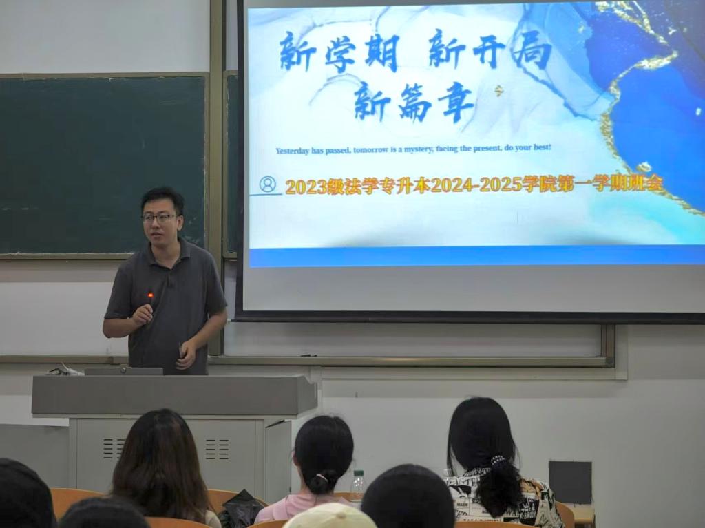 为做好2024年秋季学期开学后各项学生工作,加强学生思想政治教育、安全教育及日常管理,促进学生健康成长成才,8月25日,法学与公共管理学院各班级组织召开2024年秋季学期开学第一课主题教育班会,全体处级干部参加指导班会。