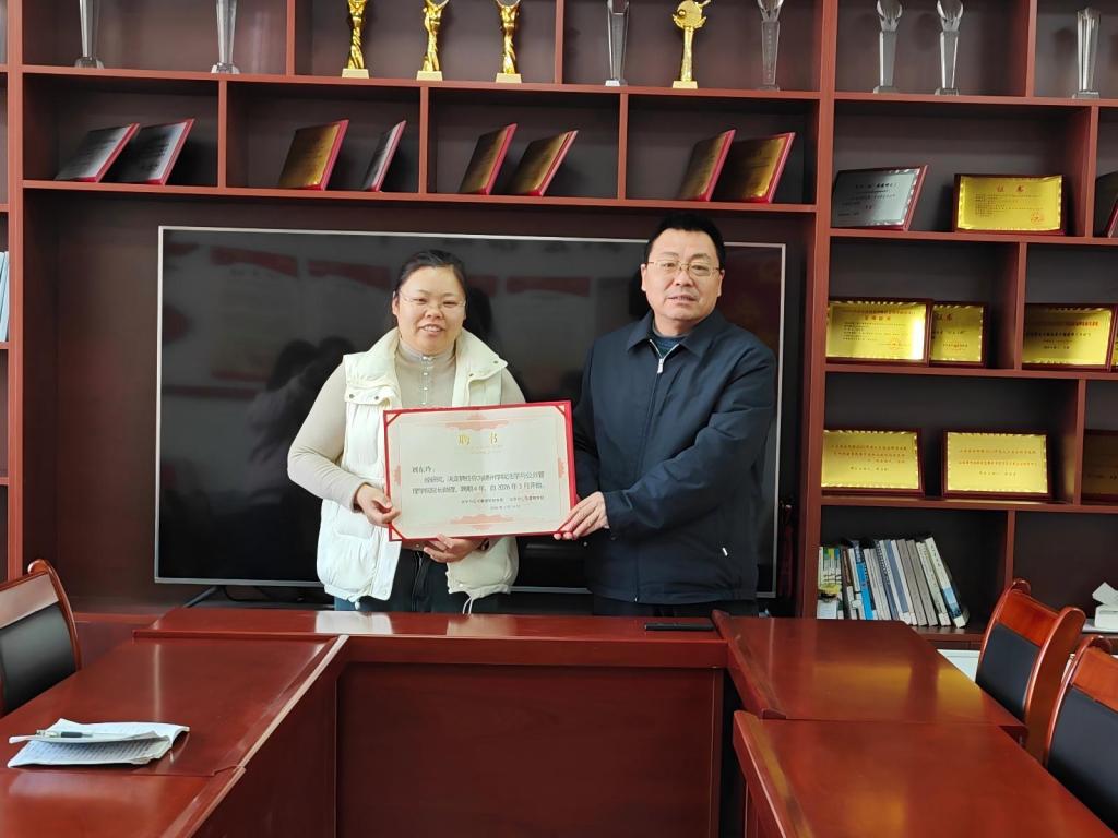 仪式上,学院领导向刘东玲、田莹莹两位同志颁发了聘书,并提出工作要求,强调要提高政治站位,强化责任担当与服务意识,尽快转换角色、履职尽责,共同推动学院在学科建设、人才培养、科学研究和社会服务等各方面实现高质量发展。新聘任院长助理作表态发言,表示将不负重托,迅速适应岗位要求,以高度责任感和使命感全身心投入工作,为学院建设与发展积极贡献力量。