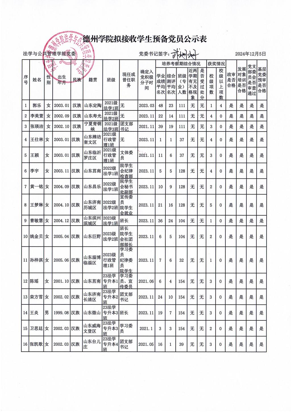 经党组织培养考察,征求党员、群众和培养联系人意见,支委会讨论研究、政治审查、集中培训、基层党委预审,拟接收郭乐等16名同志为中共预备党员。为增强发展党员工作的透明度,接受党内外群众的监督,确保发展党员的质量,根据上级文件精神和《中共437ccm必赢国际app委员会发展党员工作实施细则》的要求,现将拟接收预备党员的基本情况公示如下(名单附后):