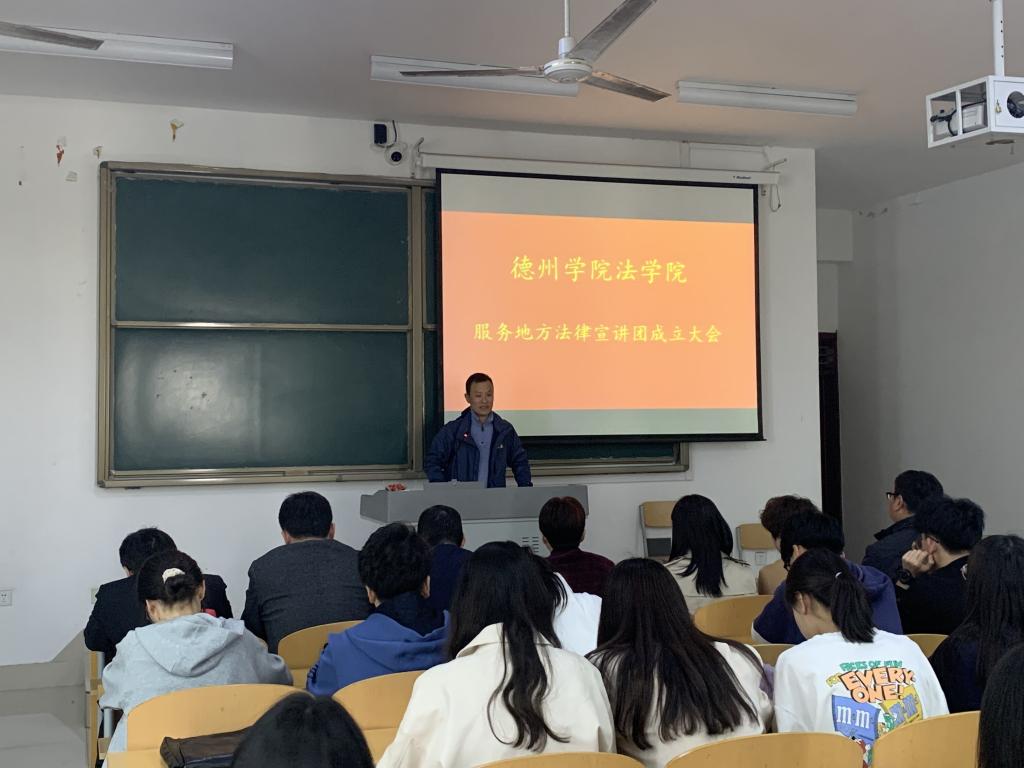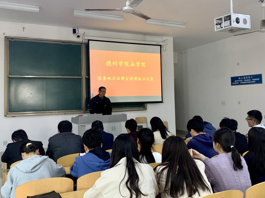 4月6日437ccm必赢国际app服务地方法律宣讲团成立大会暨宣讲活动启动仪式在博文楼427教室举行。437ccm必赢国际app党总支书记杨爱民,副院长陈伟分别就宣讲团成立的意义和运行机制作了发言。法律宣团下设宪法、法治与安全教育、违法犯罪预防和民事法律等四个宣传组,共8位专家,73名法学专业学生担任志愿宣讲员。