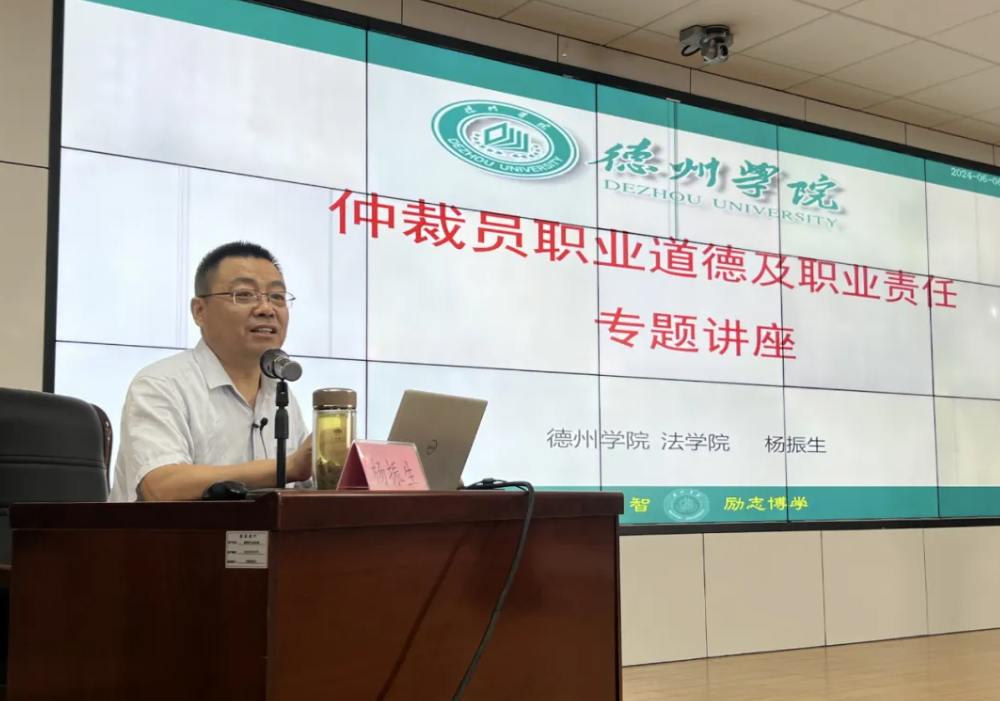 6月6日,德州仲裁委员会举办仲裁员能力提升专题培训班,437ccm必赢国际app副院长杨振生应邀为培训班授课。德州仲裁委员会办公室全体工作人员和400余名仲裁员参加培训活动。