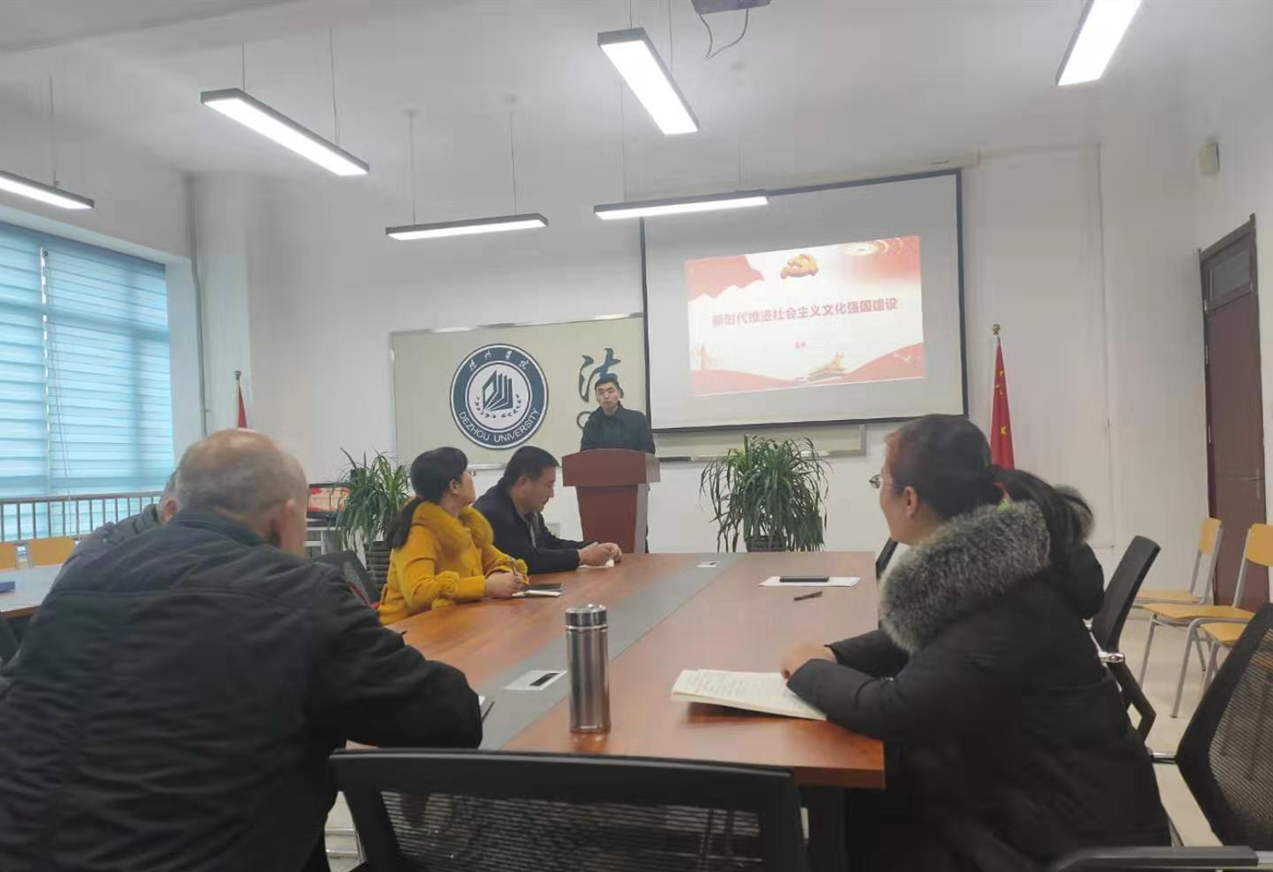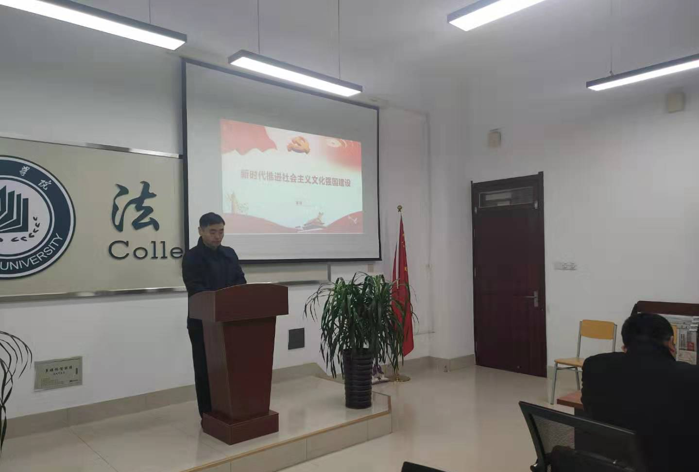 2020年11月23日,437ccm必赢国际app党总支副书记、院长夏锋教授在博文楼415党员活动室为第一教师党支部讲了一堂题为《新时代推进社会主义文化强国建设》的党课。