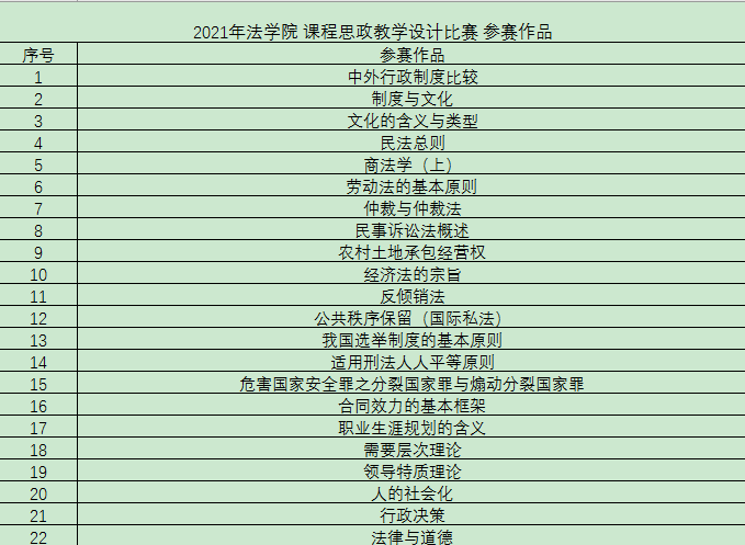 本次比赛共有22名专业教师参加,第一教师党支部的老师积极参赛。参赛教师根据所授课程的学科特色,深入挖掘各门课程蕴含的思政元素和育人功能,在教学设计中有机融入“家国情怀、法治意识、社会责任、人文精神”等思政元素,实现了“知识传授”和“价值引领”有机统一,展示了各具特色的教学风采。
